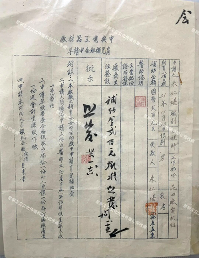 ▲1948年8月中央電工器材廠(昆明電纜集團前身)發(fā)放職工育兒補助金圓券20元。