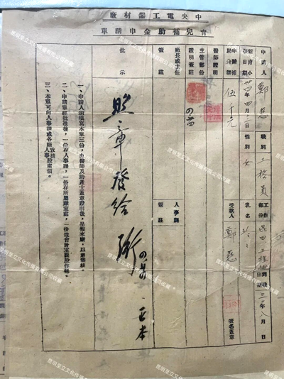 ▲1943年2月中央電工器材廠(昆明電纜集團前身)發(fā)放職工育兒補助國幣200元。